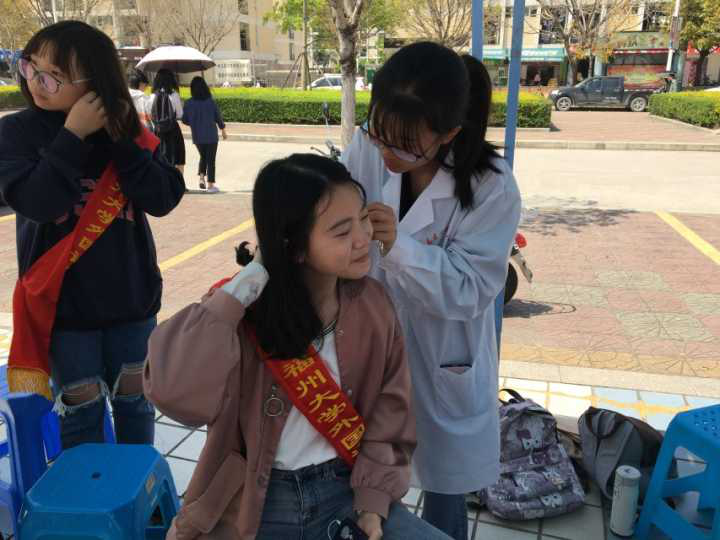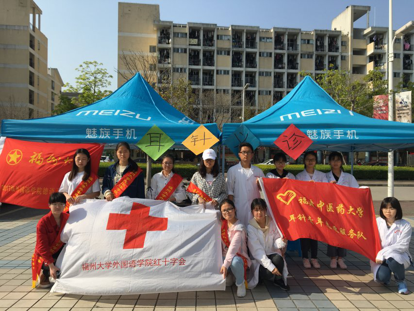 新闻中心讯/为宣传中医文化,促进传统文化的发展,4月1日,由福州大学外国语学院红十字会与福建中医药校社联耳针学术研究学会主办,17级德语5班承办的“耳针义诊”活动在青春广场顺利举行。