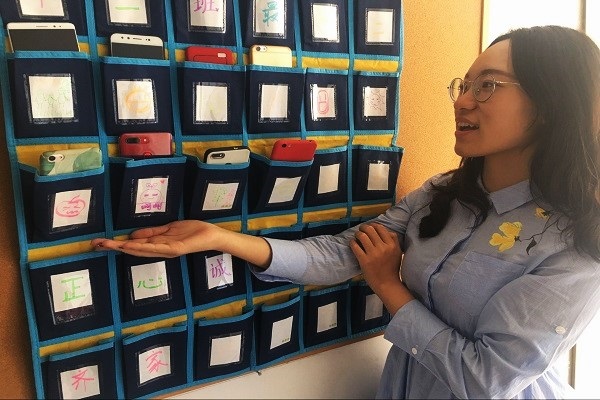 活动依据各班人数设置手机袋,统一放在教室第一排的桌子上,学生上课前自觉把手机放到手机袋中,下课后再拿回手机。手机袋上的每个小口袋都设有单独的口袋编号,以保证学生放手机后不会搞混。