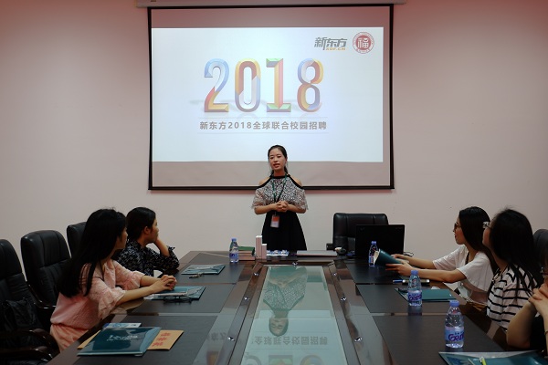 新闻中心讯/4月23日晚,福州市新东方集团2018联合校园招聘宣讲会走进人文社会科学学院。新东方相关负责人为同学们分享了他们在新东方的工作经历和人生感悟。