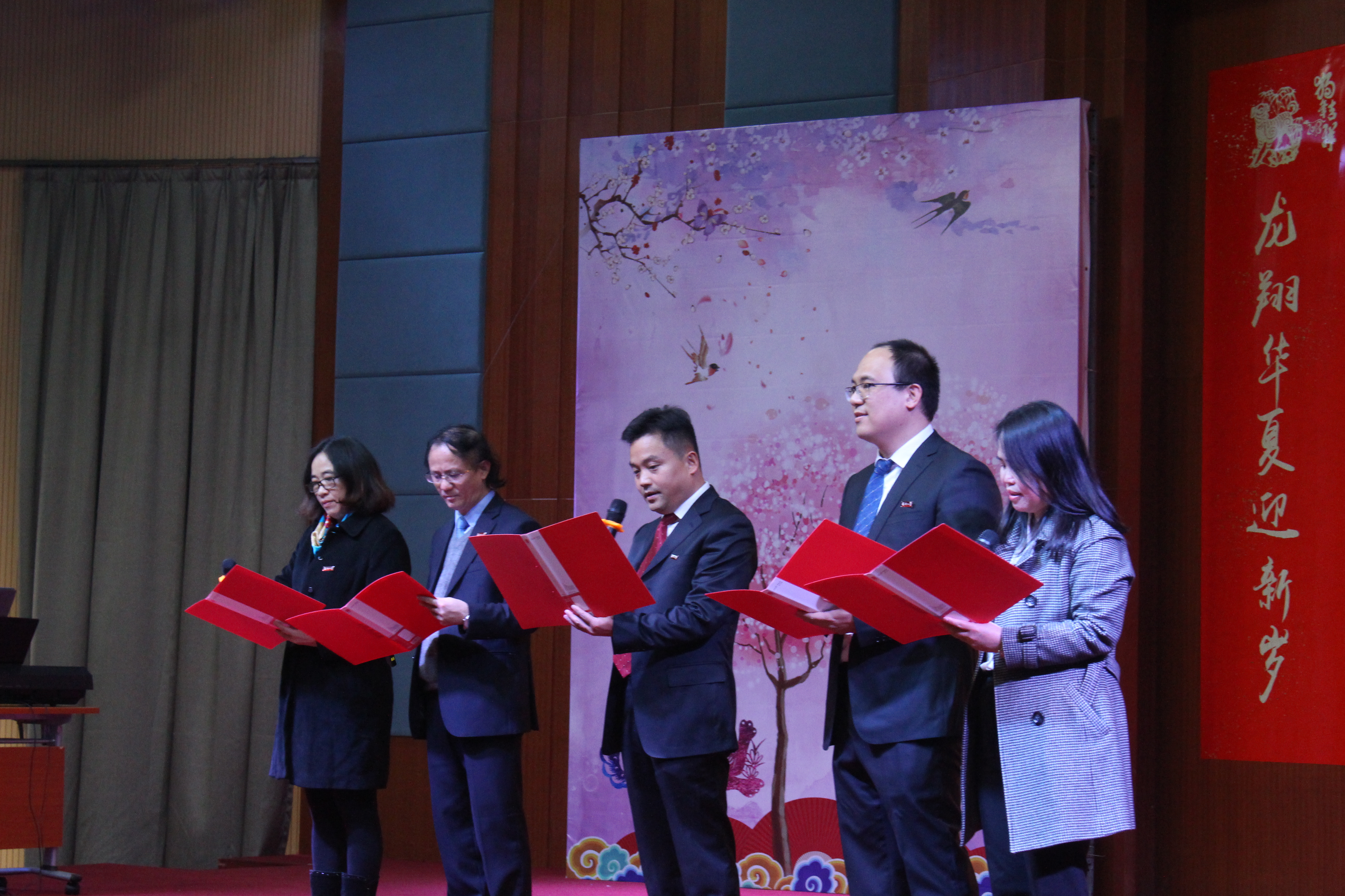 新闻中心讯/1月18日下午,“放飞梦想,拥抱春天”——福州大学外国语学院2018年迎春联欢会在欢乐的气氛中举行。校工会常务副主席倪朝霞,李文涛、倪朝兴、许德泓、杨龙、刘旺、周强、潘曦等曾经在学院工作过的院友,诺亚创梦电子商务有限公司副总蔡翔与学院领导共同出席联欢会,与学院教职员工一起喜迎新春。