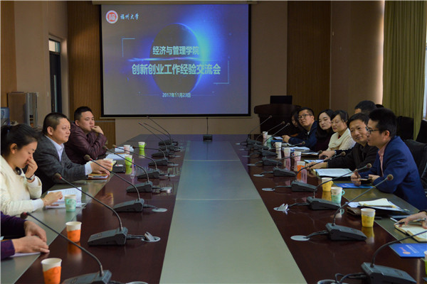 新闻中心讯/11月23日上午,由经济与管理学院创新创业实践中心承办的创新创业工作经验交流会在经管中楼307成功举行。闽江学院经济与管理学院党委张仪副书记、福建工程学院设计学院党委郭清副书记、经济与管理学院党委周强副书记以及三所高校的部分辅导员参加此次经验交流会分享创新创业工作的经验。