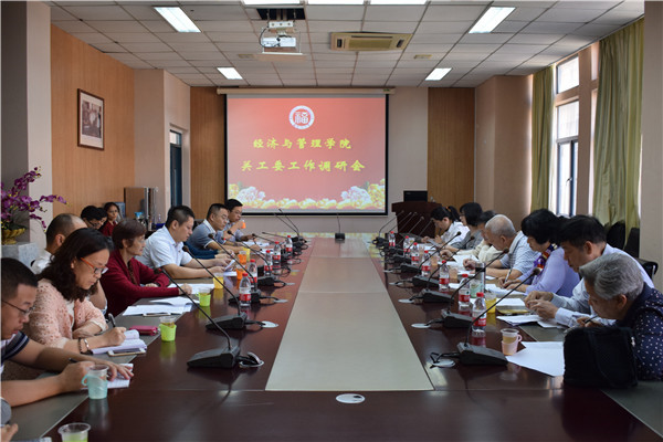 新闻中心讯/10月25日上午,经济与管理学院关工委工作调研会在经管中楼307会议室举行。校团委副书记黄滨,校关工委副主任许亚明、聂德贤和部分关工委委员,院党委副书记、关工委主任周强、院关工委委员和辅导员、学生代表参加了此次调研活动。