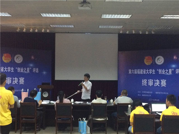 新闻中心讯/近日,由共青团福建省委员会和福建省学联共同主办的第六届福建省大学生“创业之星”评选结果揭晓。经过初赛、复赛以及运营项目的实地考察,福州大学共有9个项目获得表彰,物理与信息工程学院2016级电子与通信工程专业硕士研究生吴海金同学获此殊荣。