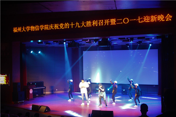 新闻中心讯/11月10日,物理与信息工程学院庆祝党的十九大胜利召开暨2017迎新晚会在博学厅顺利举办。莅临本场晚会的嘉宾有院党委书记陈笃钦老师、 党委副书记张红老师、副院长程树英老师、副院长唐艳枫老师、团委副书记兼16级辅导员徐红梅老师、17级辅导员王明老师、李炜豪老师,及各学院学生会代表。