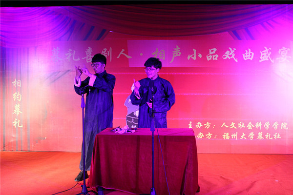 新闻中心讯/为更好地传承相声、小品以及戏曲文化,给热爱曲艺文化的学生们提供一个参演展示的平台,5月18日晚上19点,福州大学幕礼社幕礼喜剧人第二期在福友阁顺利举办。