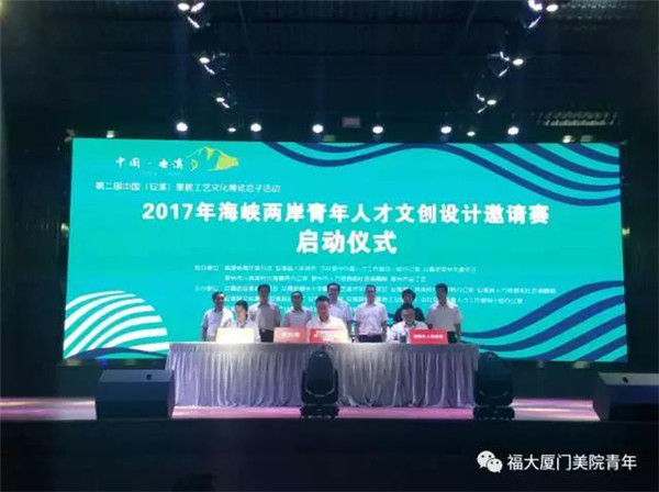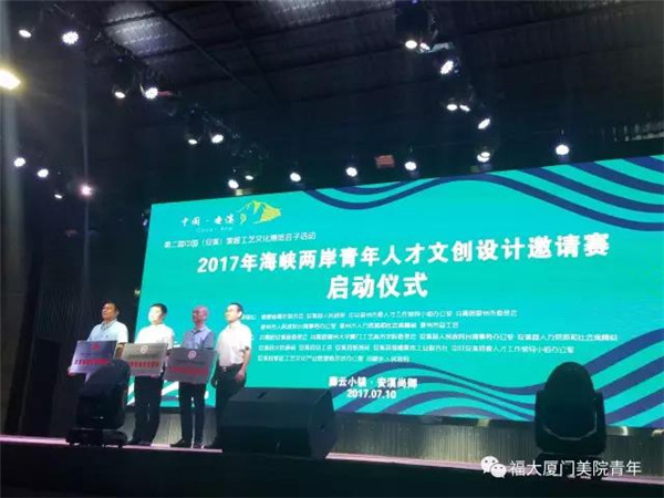 新闻中心讯/7月10日,由共青团安溪县委员会、共青团福州大学厦门工艺美术学院委员会、安溪县人民政府台湾事务办公室等单位联合主办的2017年海峡两岸青年人才文创设计邀请赛启动仪式在安溪尚卿乡国心绿谷茶庄园举行。学院党委林文泰书记、党委林旭副书记、党委委员林金强、党委委员团委书记陈振兴出席启动仪式。仪式中,林文泰书记授予安溪县尚卿乡人民政府、安溪聚丰工艺品有限公司、安溪富华工艺品有限公司三家单位“福州大学厦门工艺美术学院大学生社会实践基地”牌匾。在团省委杨溢副书记、安溪县林毅敏副县长和学院党委林文泰书记、林旭副书记等领导的共同见证下,学院团委陈振兴书记分别和安溪县团委、安溪尚卿乡人民政府签订合作共建协议。