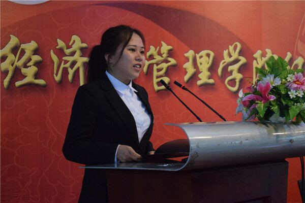 大会在激昂的国歌声中拉开帷幕。大会伊始,经济与管理学院党委翁穗平副书记宣读了省、校、学院表彰决定和获奖名单。翁书记对获得经济与管理学院“第45届校运会突出贡献运动员”、十佳大学生、十佳团支部书记、十佳学生干部以及十佳共青团干部的同学表示祝贺,呼吁经济与管理学院学子向这些优秀榜样学习。随后,获奖学生代表陈缘同学上台发言,她向现场师生分享了两个词,第一个词是“学习”,她表示这是每一个青年人都应知晓的宝贵财富;第二个词是“初心”,作为学生代表,她深知不忘初心的重要性,唯有保持初心,才能时刻充满力量不断前行。