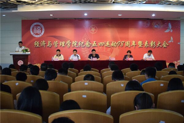新闻中心讯/5月4号下午,经济与管理学院在校素拓学术报告厅顺利召开纪念五四运动98周年暨表彰大会。经济与管理学院党委书记娄东生、院长唐振鹏、院党委副书记翁穗平、副院长叶先宝及副院长陈可嘉出席会议,会议由经济与管理学院党委副书记陈伟民主持。
