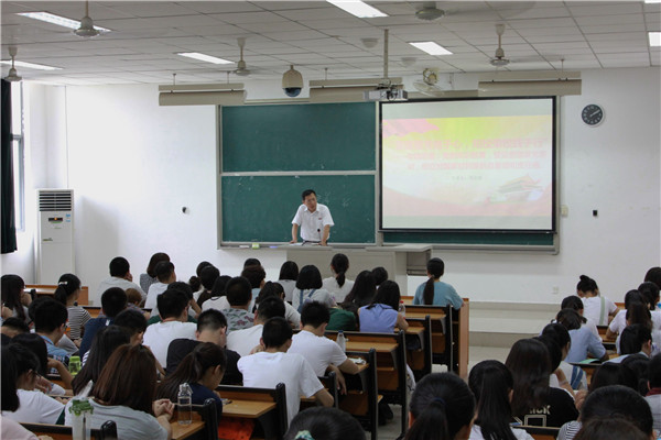 郑志刚副书记从我国当前正处在社会主义初级阶段的国情出发,分析了中国当前经济发展上面临的挑战以及未来的国家战略,当谈到中国梦和中华民族的伟大复兴时,鼓舞同学们要有一颗爱国之心。同时强调作为祖国未来的接班人,我们要坚信共产主义可以实现,并为国家和民族的发展贡献自己的力量。郑志刚副书记还向新生们详细讲解党和青年的关系,从党需要青年、青年的成长离不开党两个角度来论述,其间列举了周恩来、毛泽东等伟人的故事,告诉同学们作为当代大学生应主动接受党的引导和帮助,积极进取,热爱祖国和人民。