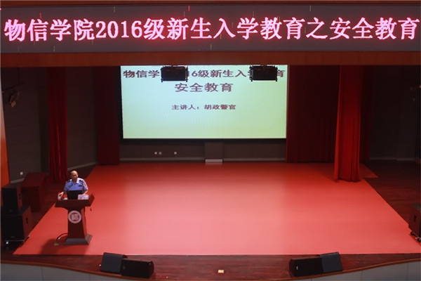 新闻中心讯/安全一直是所有高校关注的热点,为保证大学生拥有更好的校园生活,9月21日晚,福州大学物理与信息工程学院2016级新生入学教育之安全教育讲座在福州大学博学厅举行,上街公安局怡山派出所第三警务队副队长胡政警官莅临现场,给同学们带来了一场别开生面的安全教育讲座。