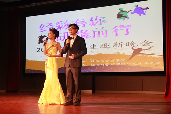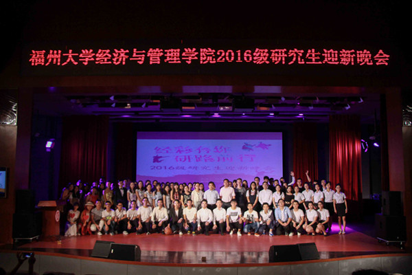 新闻中心讯/9月23日晚,经济与管理学院“经彩有你,研路前行”2016级研究生迎新晚会在博学厅隆重举行。经济与管理学院党委副书记陈伟民,团委书记赵燕松,团委副书记夏丽君等出席了本场晚会。