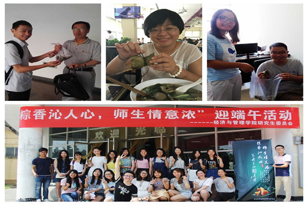 新闻中心讯/端午节是我国的传统节日,为了弘扬民族精神,传承端午文化 ,增进学生与导师的沟通交流,6月7日上午,经济与管理学院研究生会在海棠园学生食堂组织开展了“粽香沁人心,师生情谊浓”主题活动。