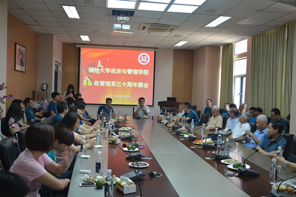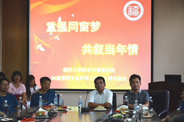 时隔26年,86级管理系3个班级,70多位学生悉数到场,相聚母校,共忆美好时光。随后,在307会议室举行了长达两个小时的交流会。出席这次交流会的有经济与管理学院党委书记娄东生研究员、院党委副书记陈伟民老师、院校友办主任魏凤南老师以及10位老教师。