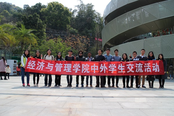 新闻中心讯/3月27日上午,为了增进经管师生与外国留学生的亲密关系,经济与管理学院对外办和学生办联合举办了“经济与管理学院中外学生交流活动”。交流活动在福州金牛山体育公园福道举行。参加本次活动的有经济与管理学院对外办鲁启舟老师、王丽丽老师、王志伟老师、严佳佳老师及彭喆老师等。