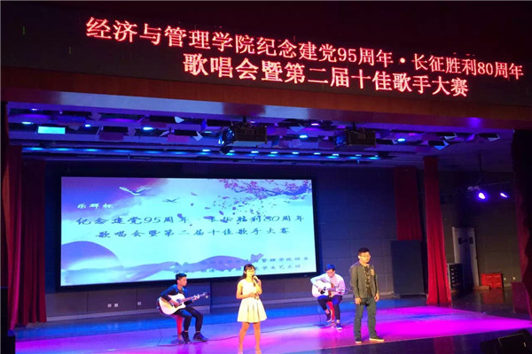 新闻中心讯/4月17日晚,经济与管理学院纪念建党95周年长征胜利80周年暨第二届十佳歌手大赛在博学厅拉开帷幕。人文学院音乐系吴荣华副教授,福建省合唱协会常务理事、福州大学校学生合唱团指导李松华老师,校团委文化部部长张茜茜,至诚学院音乐系潘超老师以及经济与管理学院党委副书记陈伟民老师担任本次大赛评委。比赛以唱响红歌为主题,融合现代歌曲元素,为观众带来了一场红色旋律下的音乐盛会。