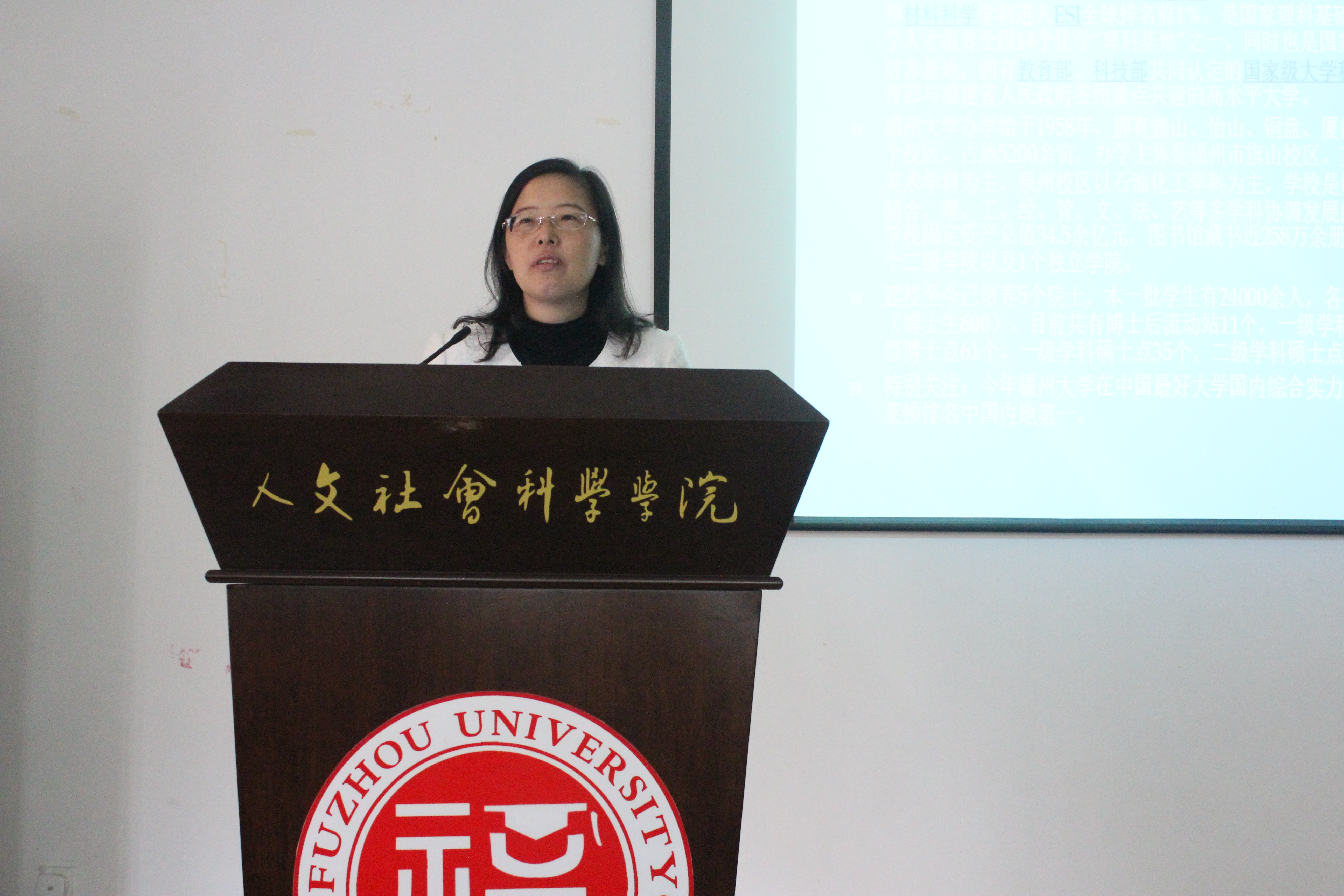 在课堂上,李海榕教授通过对福州大学的深入介绍让同学们对自己所在的大学更加了解、自豪。