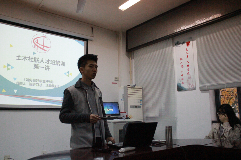 新闻中心讯/12月27日早8点,福州大学土木工程学院学生社团联合会人才培训班第一讲于土木南楼第二会议室顺利开讲。本讲由土木学院社联主席黄宇洲主讲。黄宇洲主席身兼院社联主席,测量协会会长,水利水能创新协会副会长等多个学生干部职务,对学生工作有着深刻的理解和丰富的经验。