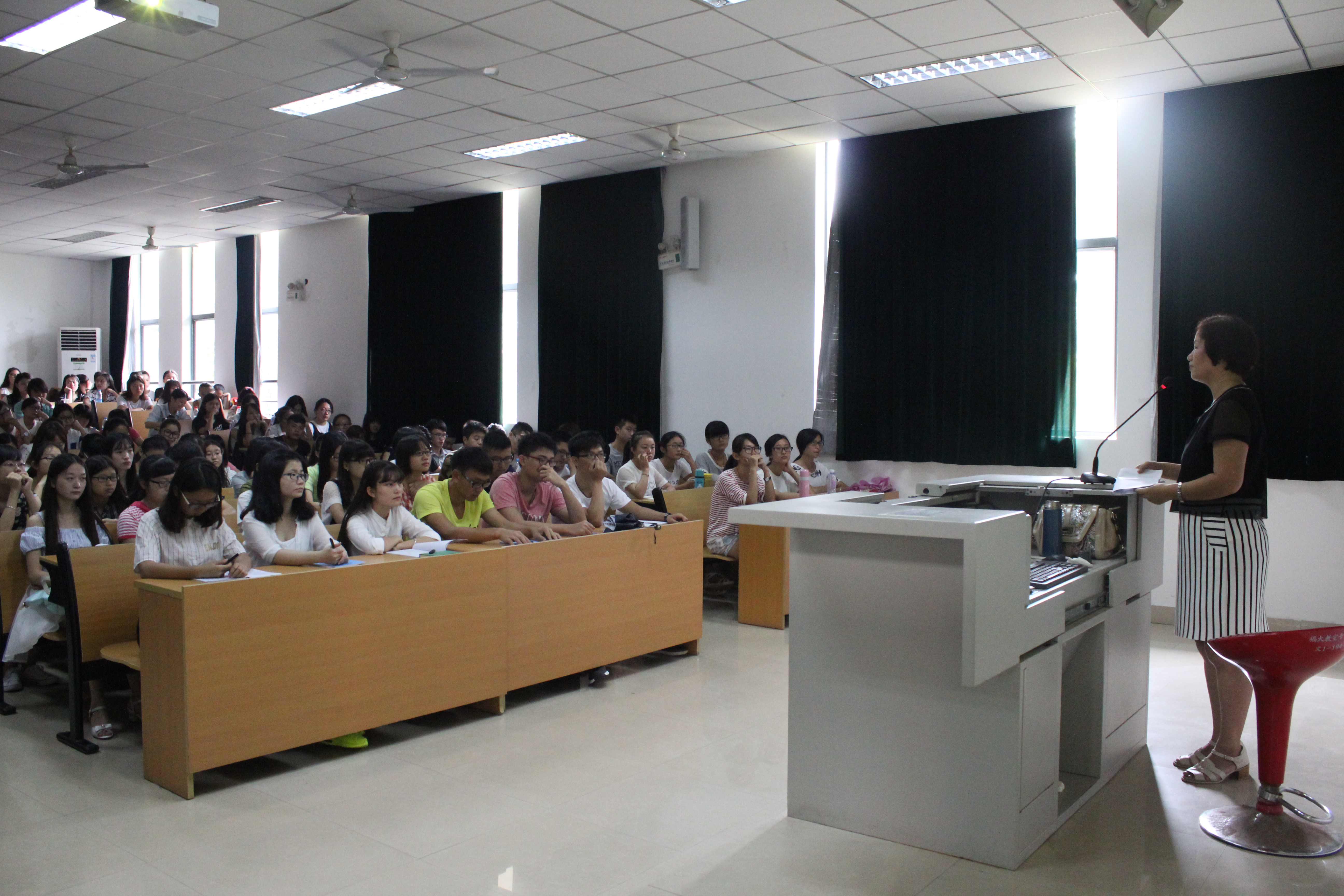 此外,梁桂芳老师还为新生们介绍了福州大学以及人文学院的概况,并希望同学们能够好好利用福州大学这个平台,发展自身。随后,梁桂芳老师为新生们着重讲解了学籍管理的相关内容:考试制度、请假制度、本专业和其他专业的关系、毕业制度等。