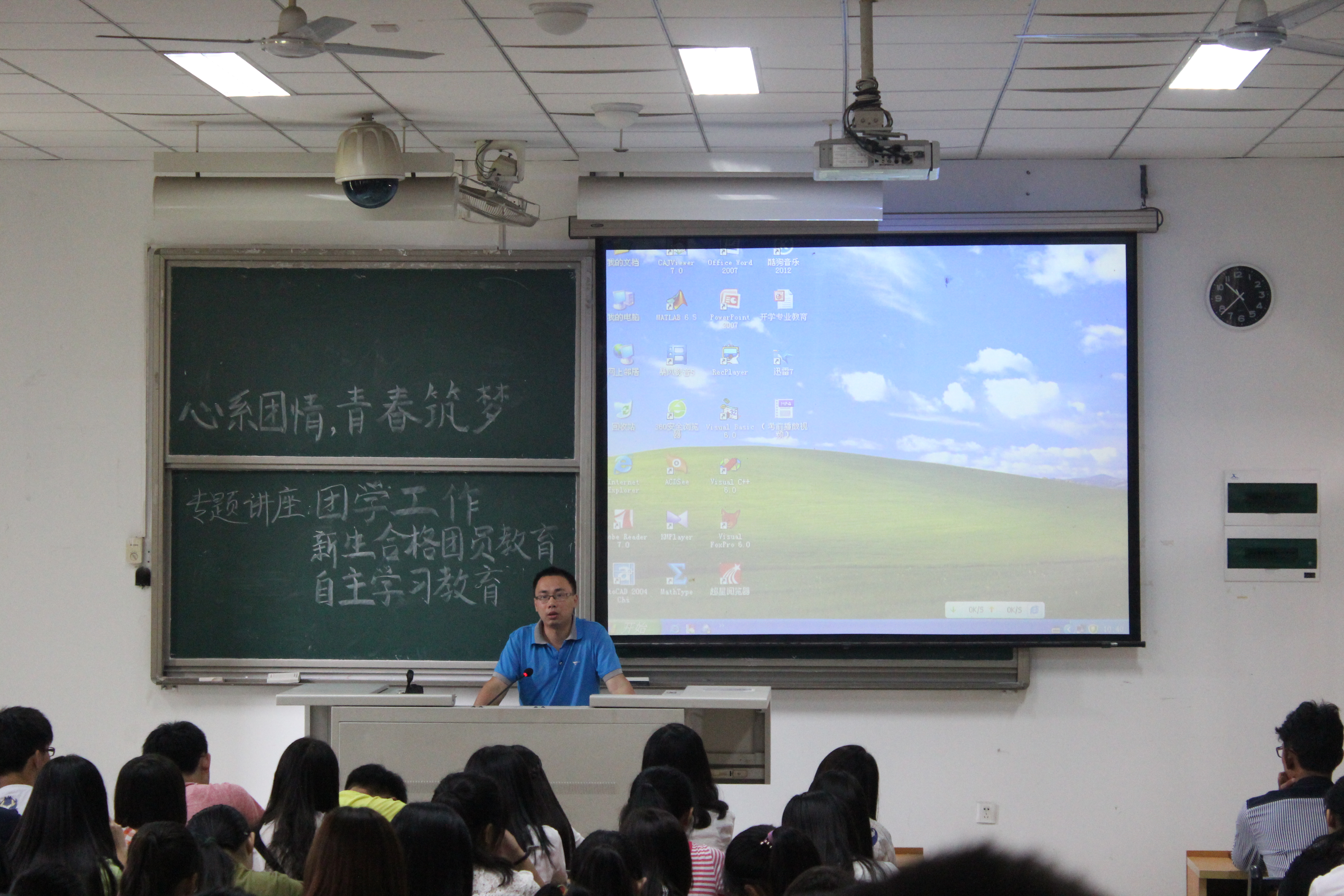 新闻中心讯/9月9日上午十时半,人文学院2015级新生在文一104开展“心系团情,青春筑梦——团学教育,新生合格团员教育,自主学习教育”专题讲座。人文学院团委书记张榕平作为主讲人出席讲座。