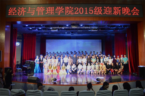 新闻中心讯/舞袖扬起,音我唱响,迎新寄望。9月26日晚,经济与管理学院2015级迎新晚会在图书馆博学厅成功举办。校党委宣传部刘朝晖副部长,经济与管理学院主持工作副院长唐振鹏教授,经济与管理学院党委翁穗平、陈伟民副书记等莅临现场进行观看。各年级辅导员与2015级全体新生参加了晚会。