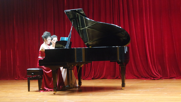 晚上七点,音乐会准时开始,一袭红裙的柯星凡连奏两曲,曲调或悠扬或沉郁,节奏或激昂或缓慢,博得阵阵掌声。独奏之后是杨尚朋的独唱,黑色燕尾服搭配独特的嗓音,让全场观众陶醉。黄雅娟的二胡独奏以及柯星凡与孙丹的四手联弹都让在场观众惊叹不已。