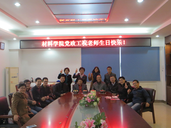 2015年3月26日下午,在欢快的《祝你生日快乐》音乐声中,材料学院党政工和学院全体教师在嘉锡楼“教工之家”首次为第一季度生日的老师举行集体生日庆祝活动。