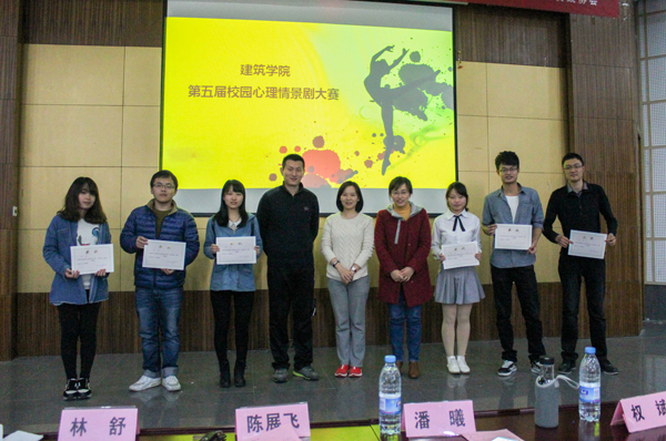 新闻中心讯/4月12日下午,建筑学院第五届心理情景剧大赛于土木院报告厅顺利举行。此次比赛由福州大学心理健康与辅导中心主任潘曦老师,院团委书记陈展飞老师,辅导员权斌老师、林舒老师、魏少锋老师,以及院团委学生会主要干部担任评委。