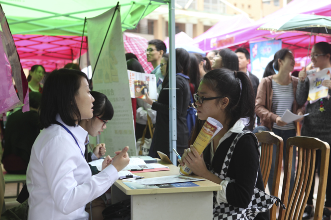 新闻中心讯/为搭建用人单位与毕业生双向交流平台,促进学院毕业生充分就业,11月7日,由阳光学院就业指导中心主办,会计学系校友会承办,中国海峡人才市场协办的福州大学阳光学院2014年首场大型招聘会在商学楼前篮球场举行。会计学系系主任蒋国发教授、就业指导中心赖靖靖老师等多名老师亲临招聘会现场指导工作。