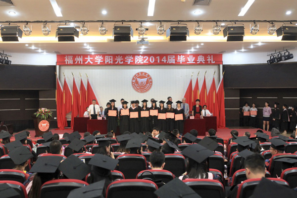 新闻中心讯/6月15日上午,福大阳光学院举行2014届学生毕业典礼暨学位授予仪式。福州大学党委副书记、阳光学院党委书记陈少平,阳光学院党政领导等出席了毕业典礼,各系部主任与全体毕业生参加了毕业典礼。