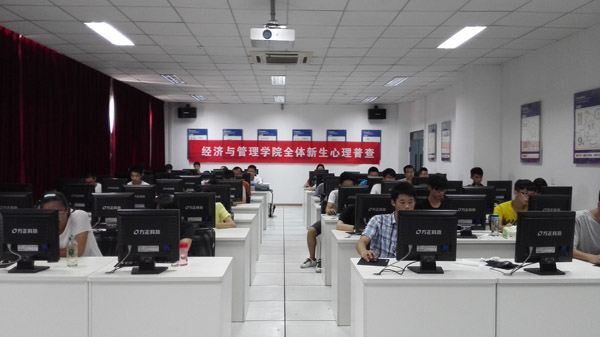 新闻中心讯/9月17日下午,经济与管理学院2014级新生心理普查在经管中楼机房顺利进行,本次心理普查计划在10天内完成。经济与管理学院心理工作指导老师夏丽君及经管学院学生心理服务中心的部员们也来到现场,以确保测评工作有效开展。