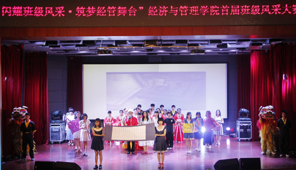 经过激烈角逐,2013级经济一班所带来的表演《青春少年中国梦》夺取桂冠。该班级着眼于对传统文化的继承与发扬,在充分挖掘班级同学特长的基础上,选取了古典舞,武术,舞狮等元素进行展示。为了节约费用,一部分道具更是来自同学们的手工制作。在一起工作,排练的过程中,班级的凝聚力也不断加强。大家觉得最困难的是班级风采展与线性代数的考试在同一天,同学们必须做到紧张复习与排练的协调。过程中也有部分同学出现了消极情绪,经过其他同学的调节才得以缓解,并在结束线*试的当天,投入到了班级风采展的表演当中。第一名的取得并不容易,是全班39个人共同付出的结果。该班班长王泽宇在结束后激动地说:“终于做到了!我们每个人都是第一。但是最重要的是和你们曾一起走过这段路。”