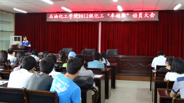 新闻中心讯/5月26日上午,石油化工学院在嘉锡楼413会议室举行化工专业“卓越班”动员大会。院分管本科教学副院长江义平高工、院长助理侯琳熙副教授、化工专业“卓越班”负责老师赵素英教授, 2012级本科生辅导员蒋林娟以及2012级化工专业全体同学出席了动员大会。