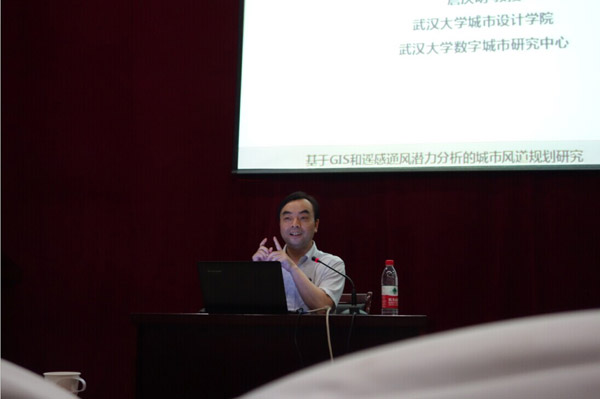 首先,詹庆明教授以风道为主体提出“城市风道的基础理论”、“武汉市风道建设的基础条件研究”以及“武汉市风道总体布局规划”,并以此为三大主要内容展开演讲。关于城市风道理论涉及到对水资源、风资源的合理运用和原理分析,詹教授以武汉市风道建设为案例,对不同季节风速、风温、风向等诸多因素,利用遥感技术进行分析以及风道建设需要考虑的因素作为出发点,从而达到合理规划城市的目的。最后,詹教授针对最后内容以具体图形简单明了地对武汉风道类型及等级确定做出分析。