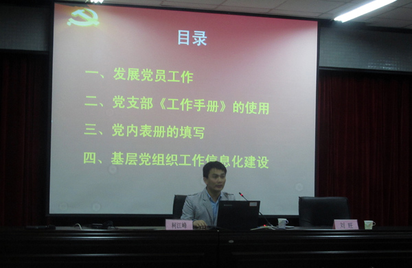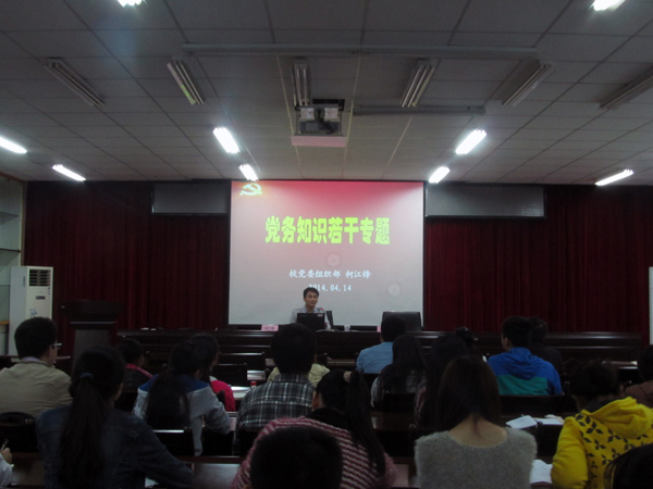 新闻中心讯/2014年4月14日晚,化学学院、石油化工学院在嘉锡楼413会议室举行党支部书记业务工作培训会,校党委组织部柯江锋老师应邀担为学生党支部书记作党务知识专题培训,培训会由化学学院党委副书记刘旺老师主持。