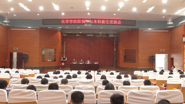 新闻中心讯/4月15日,福州大学化学学院院领导与新生交流会在嘉锡楼1楼报告厅举行,到场嘉宾有化学学院副书记刘旺老师、副院长袁耀锋教授以及团委书记蓝荣聪老师。2013级辅导员单洪勰主持交流会。