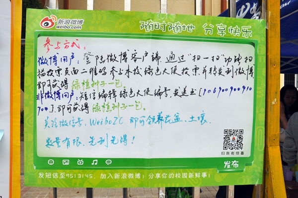 “这次我们第一次为同学们购买了花土,为同学们免去了找土的麻烦,让同学们真正的和‘土豪’做朋友。”活动负责人常同学说。和去年“领养绿植活动”不同,福州大学至诚学院微博协会为同学们准备了花盆和花泥,只要关注福州大学至诚学院微博协会的微信平台,发送“壕盆友”领取“壕朋友卡”就可以拿到花盆和花泥。