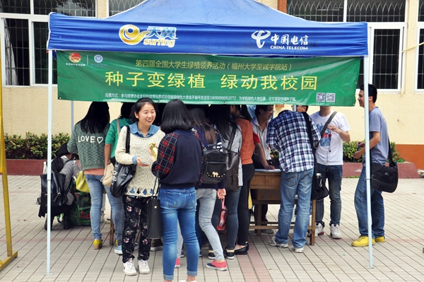 新闻中心讯/世界地球日,种子变绿植,一起绿动我校园。4月21日至22日,由共青团中央学校部、新浪微博和爱地球环保组织联合发起的“绿植领养活动”,第四届全国大学生绿植领养活动在福州大学至诚学院北教楼前举办。