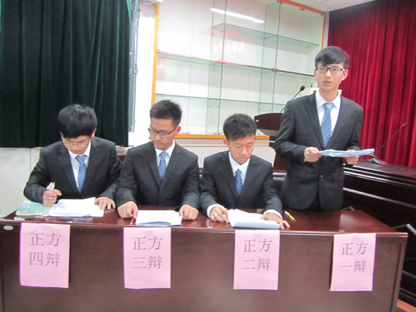 本次决赛共有四支队伍参加最终角逐,分别为化学一班、化工二班、过控二班及制药工程班。决赛共分两场,先是由化学一班与制药工程班就“无人监考应该不应该提倡”为主题进行辩论。比赛一开始,双方辩手冷静内敛,严谨认真地阐述着己方观点。当进入自由辩论环节时,双方情绪高涨,唇枪舌战,据理力争,互不相让。第二场比赛在化工二班与过控二班之间展开,辩论的主题是“奋斗路上,好队友更重要”VS“奋斗路上,好对手更重要”。相较于第一场比赛,第二场比赛一开始,双方辩手就火力全开,词锋犀利,辩口剑辞,气氛热烈而紧张。