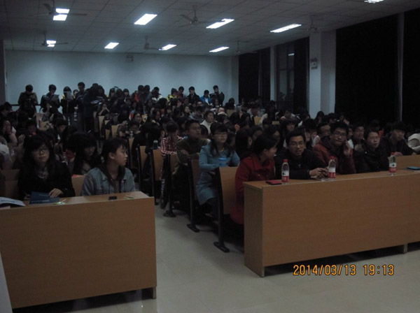 活动当晚,同学们早早地就来到了活动现场,讲座尚未开始,现场早已座无虚席,气氛热烈。大家认真阅读了由华图教育分发的“2014年考公岗位报考指导蓝皮书”。在主持人宣布大赛开始后,教室里响起了热烈的掌声,从大家的掌声中我们可以听出同学们对本次大赛充满期待。在接下来的环节中,尹霄老师凭借自身对福建省公务员考试的研究与辅导经验,从政策形势到考情趋势给大家做了一个全面的解析。讲座过程中,尹霄老师先利用一些数据分析了近年来政策的变化。在讲考情趋势时,尹霄老师通过一道道真题和幽默的语言,为同学们分析解题技巧,帮助同学们沉着应对福建省公务员考试。主讲老师一个小时半的耐心讲授,让同学们受益匪浅。