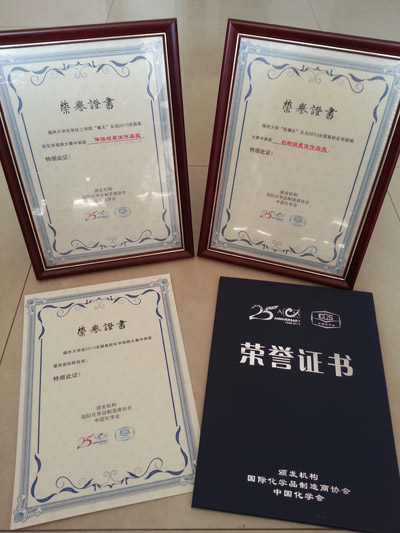 新闻中心讯/11月29日,由国际化学品制造商协会(AICM)与中国化学会共同主办的“2013全国高校化学视频大赛决赛暨颁奖典礼”在上海科技馆隆重举行。福州大学化学化工学院至臻队(队员:张碧琦、黄溦、姚奋增;指导老师:孙建军教授)和“氟”大团队(队员:林泉富、陈朝煌、刘艳嫔;指导老师:翁志强教授)从全国120支队伍中脱颖而出,进入14强,与来自其他高校的12支队伍参与最终决赛。