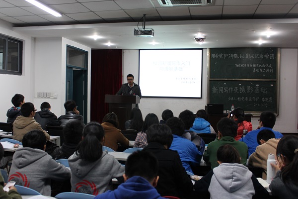 新闻中心讯/11月29日晚,物理信息工程学院新闻宣传通讯员基础能力培训班在物信南楼111开班。为了提高记者团新成员和各班、各两委部门新闻联络员们的新闻写作及采访报道能力,学院特地邀请到了毕业于中国传媒大学,现就职于福州大学校党委宣传部的李连富老师对同学们进行新闻写作及摄影基础培训。