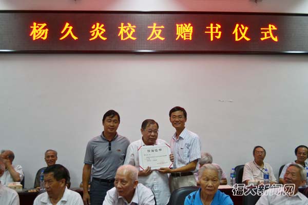 新闻中心讯/10月2日上午,福州大学电气学院迎来了1958级的优秀校友们,并在新楚楼南212召开了58级校友座谈会。座谈会期间,校友杨久炎先生向电气学院捐赠了他的著作《50年人生感悟》一书,表达了对福州大学55周年校庆的祝福。
