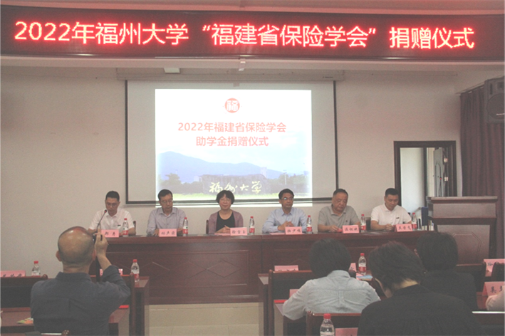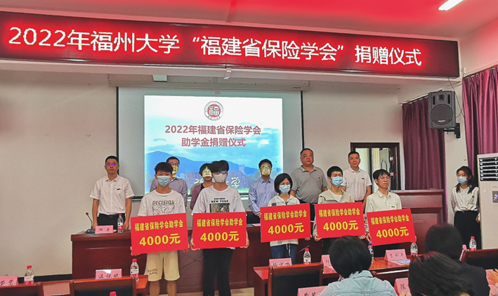 捐赠仪式在庄严的国歌声中开始,福建省保险学会副会长温怀斌宣读资助学生名单,与会领导为五名受助学生颁发福州大学“福建省保险学会助学金”。受助学生代表罗盛葳、覃伟真先后发言,他们对福建省保险学会的善举表达了感谢,表示将努力拼搏,不断进取,将爱传承。