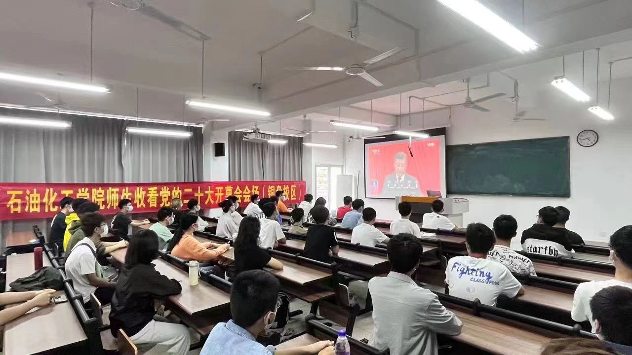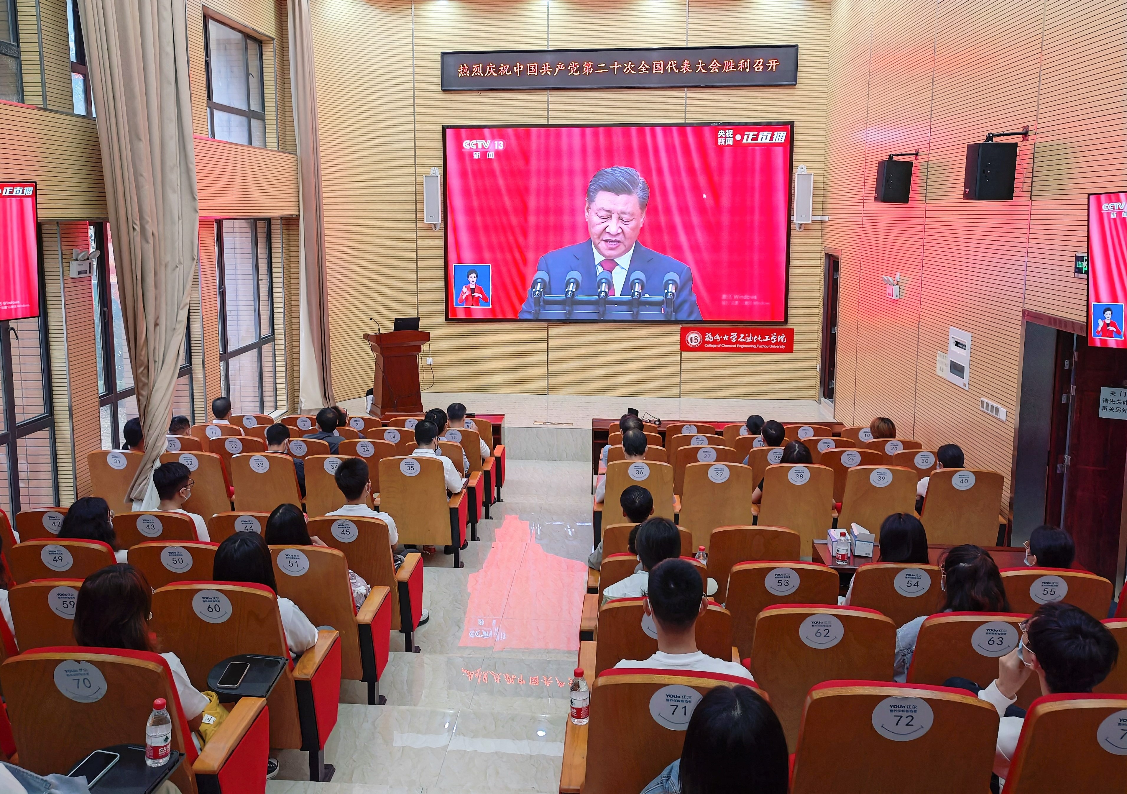 石油化工学院党委第一时间组织师生分别在旗山校区、泉港校区、怡山校区和铜盘校区四个校区收看了党的二十大开幕会现场直播。同时,组织师生一同学习研讨习近平总书记在开幕会上所做的报告,引领师生坚定不移听党话、矢志不渝跟党走。