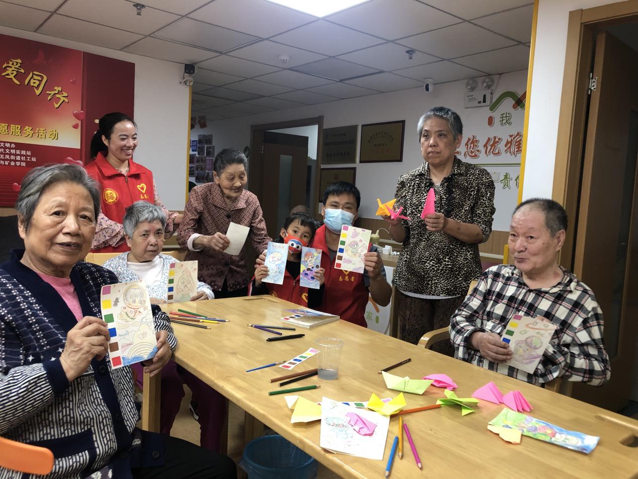 4月29日与5月7日,紫金地质与矿业学院“孝亲敬老,青年争先”志愿服务队两次走进鼓楼区五凤街道社区养老照料中心,为中心的15位老人们提供志愿服务。志愿者与老人们共同手工折纸,共同涂鸦作品,击打非洲鼓,一同下象棋。