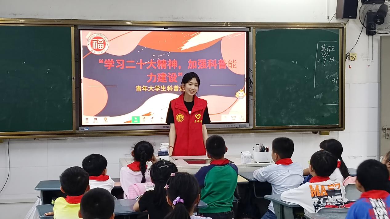 5月6日,紫金地质与矿业学院“地质科普”大学生志愿服务队走进福州市鼓楼区第三实验小学,为小学生朋友们进行科普宣传。活动中,志愿队许婧妤同学与权浩同学走进课堂,走入小朋友中间,通过视频和PPT展示分别为大家带来有关“地质”与“天文”的科普知识。