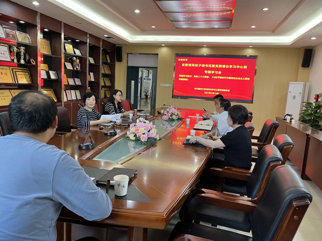 融媒中心讯/5月10日上午,材料学院在嘉锡楼313会议室召开学习贯彻习近平新时代中国特色社会主义思想主题教育党委领导班子读书班暨党委理论学习中心组专题学习会。会议由学院党委书记倪朝霞主持,学院党委领导班子成员参会。