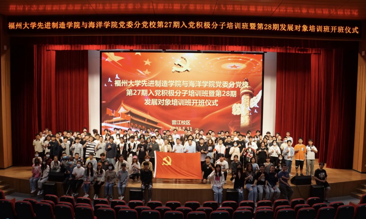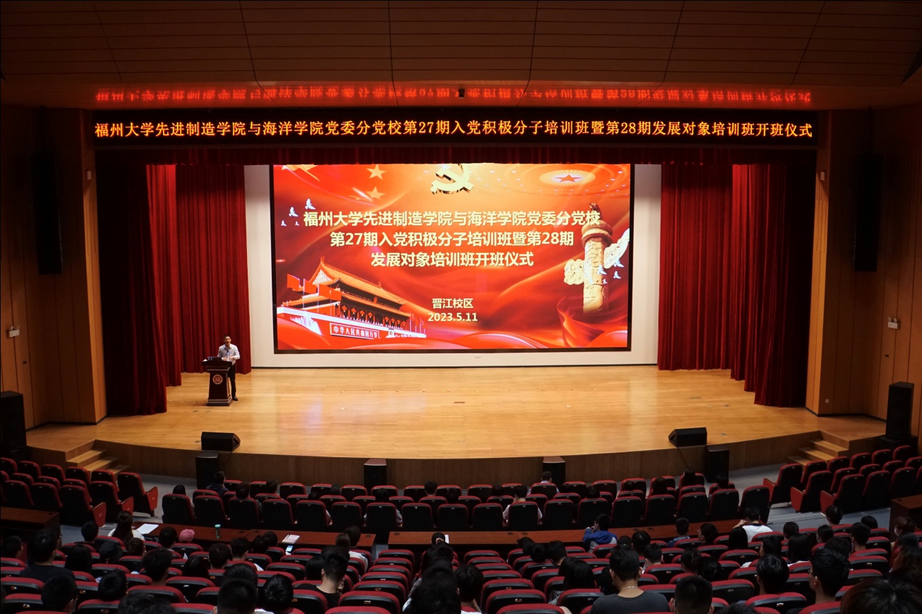 融媒中心讯/5月11日晚,先进制造学院与海洋学院党委分党校第27期入党积极分子培训班暨第28期发展对象培训班开班仪式于晋江校区礼堂顺利举行。先进制造学院与海洋学院党委副书记兼纪委书记谢芳成、院党委组织员章先彪出席开班仪式。