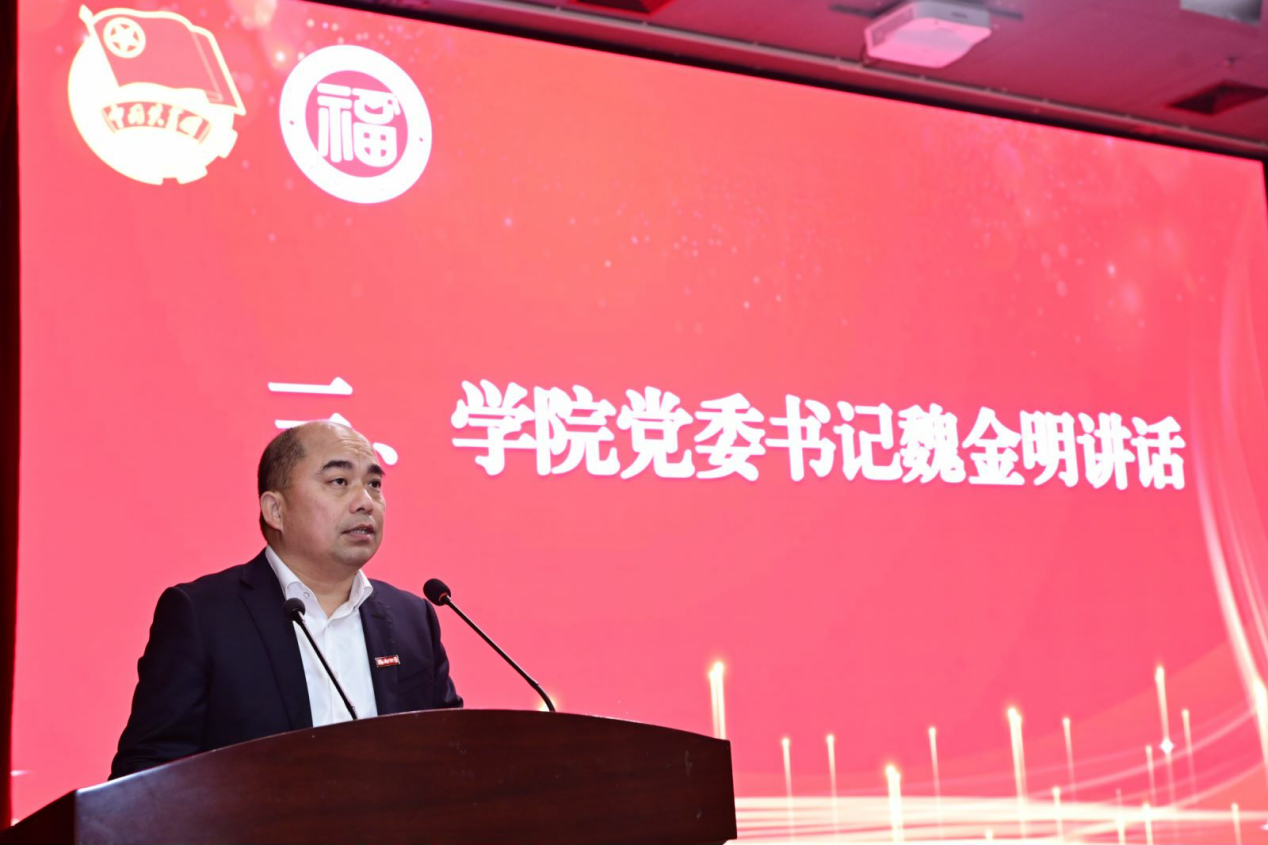 院党委书记魏金明发表讲话,他指出学院共青团能主动适应时代变化,响应青年学生需求,在凝聚青年力量、推动青年发展、服务青年成长方面取得了丰硕的成果,在学院各项事业高质量发展中发挥了重要作用,为加快推进学院“双一流”建设作出了积极贡献。他对上一届学院共青团团结带领广大团员青年所取得的成绩表示肯定与赞扬,同时向全院各级团组织和团员青年学生提出了四点希望:一是筑牢政治根基,坚定理想信念;二是围绕中心大局,矢志奋发有为;三是汇聚青春力量,服务青年成长;四是深化改革攻坚,全面从严治团。
