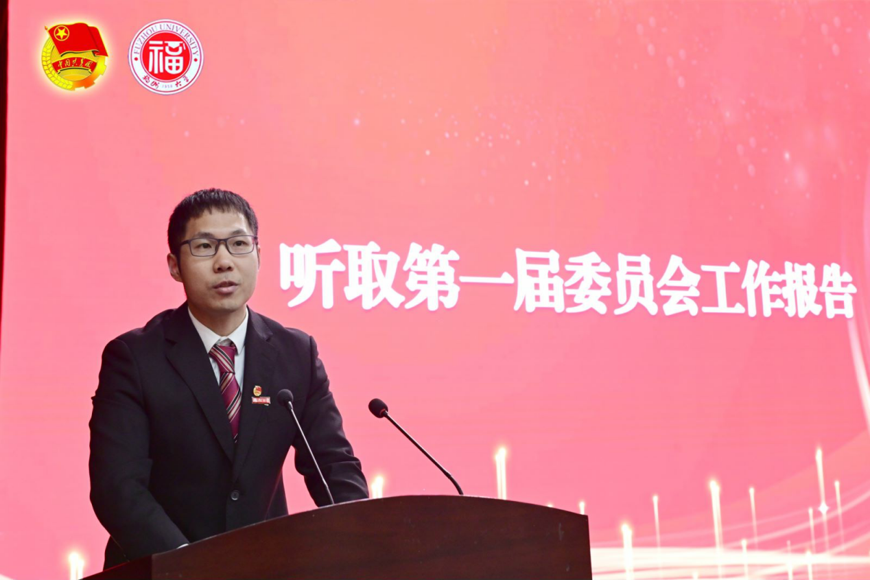 在第一次全体代表会议上,陈山老师代表共青团福州大学物理与信息工程第一届委员会做了题为《牢记嘱托跟党走,砥砺奋进新征程,奋力谱写学院“双一流”建设青春篇章》的工作报告,报告总结了过去五年学院共青团工作取得的成绩和宝贵经验,明确新时代学院共青团工作的新思路、目标和任务。